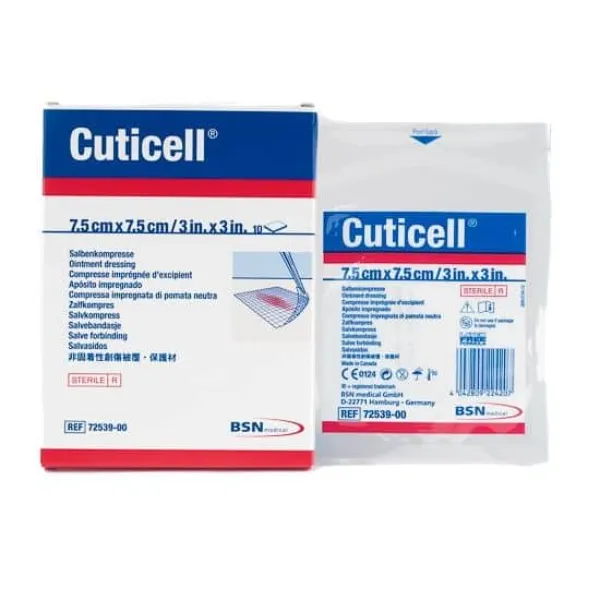 Huidvriendelijke wondbescherming met klassieke paraffine zalfgaas \nBSN Cuticell Classic is een traditioneel katoenen zalfgaas dat geïmpregneerd is met zachte paraffine. Het gaas beschermt wonden effectief tegen uitdroging en bevordert een vochtig wondmilieu, wat essentieel is voor optimale wondgenezing. Door de niet-verklevende eigenschappen blijft het gaas niet aan de wond kleven, waardoor verbandwissels pijnloos en comfortabel zijn. \n Kernvoordelen en eigenschappen: \n \n Niet-verklevend: Helpt pijn en beschadiging van nieuw weefsel te voorkomen bij verbandwissels. \n Hydraterend effect: De paraffine-impregnatie voorkomt uitdroging van de wond en ondersteunt een vochtig wondmilieu. \n Huidvriendelijk: Gemaakt van zacht katoen, wat comfort biedt, zelfs voor gevoelige huid. \n Flexibel: Past zich eenvoudig aan verschillende wondvormen en lichaamscontouren aan. \n Compatibel: Kan worden gecombineerd met secundaire absorberende verbanden om wondvocht op te nemen. \n \n Toepassingen: \nBSN Cuticell Classic is geschikt voor een breed scala aan wonden, waaronder: \n \n Licht exsuderende wonden zoals schaafwonden, kleine brandwonden en snijwonden. \n Chirurgische wonden en huidtransplantaties. \n Chronische wonden zoals veneuze ulcera. \n \n Gebruikers: \nDit zalfgaas is geschikt voor gebruik door zorgprofessionals, zoals artsen, wondverpleegkundigen en chirurgen, in ziekenhuizen, klinieken en thuiszorgomgevingen. Het is ook geschikt voor particulier gebruik onder begeleiding van een professional. \n Materiaal en afmetingen: \nBSN Cuticell Classic is gemaakt van hoogwaardig katoen, geïmpregneerd met paraffine om de wond te hydrateren en niet te laten kleven. Het is verkrijgbaar in diverse afmetingen voor verschillende wondverzorgingsbehoeften: \n \n 5 x 5 cm – Voor kleine wonden. \n 10 x 10 cm – Voor middelgrote wonden. \n 10 x 40 cm – Ideaal voor langgerekte of grotere wondoppervlakken. \n 7 m x 10 cm – Geschikt voor gebruik op maat bij langdurige zorg of voor grotere toepassingen. \n \n Verpakking: \nBSN Cuticell Classic wordt steriel verpakt per stuk of op rol, afhankelijk van de afmeting. De steriele verpakking zorgt voor optimale hygiëne en gebruiksgemak, ideaal voor zowel professioneel gebruik als thuiszorg. \n \nMet BSN Cuticell Classic kiest u voor een betrouwbare, huidvriendelijke en comfortabele oplossing voor hoogwaardige wondverzorging, die het genezingsproces effectief ondersteunt.
